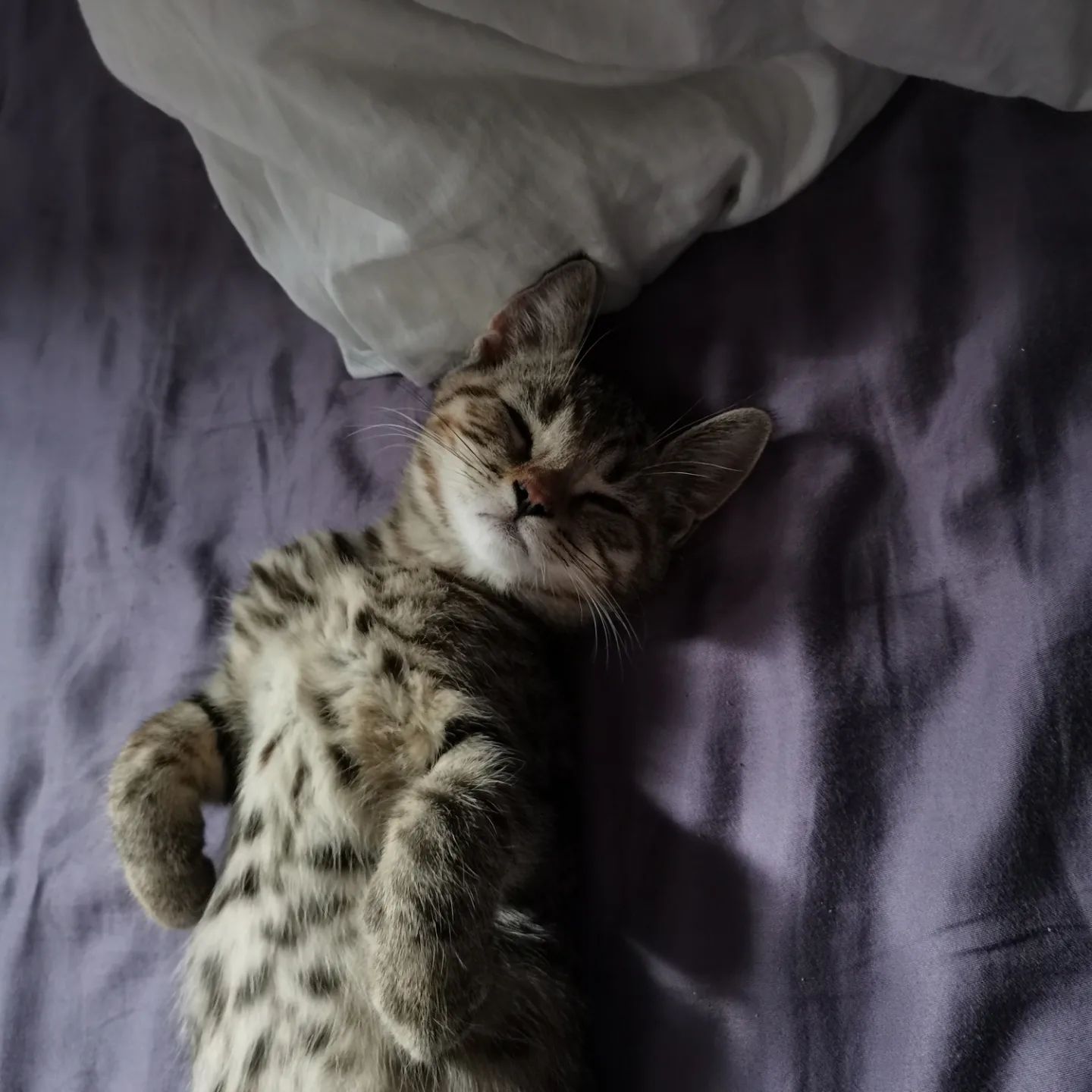 Yuna is definitely the cuddlier one of the two. She loves to lay on her back and just get all the pets she can, even demanding them, by either loudly complaining or just stepping on us while we sleep. A demand we will gladly fulfill, as she has the softest fur of any cat I have ever met. She has a calm demeanor and likes to be near us and relax. Though that peace often does not last very long, as Yin usually starts annoying her, which leads to them chasing each other through our flat.